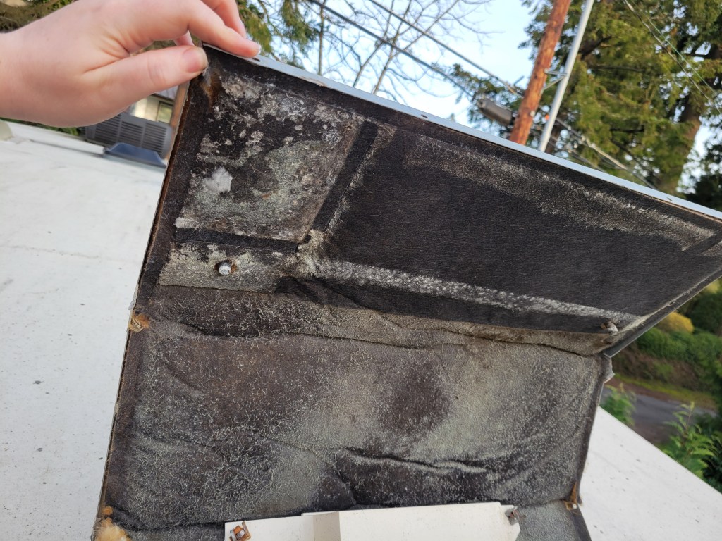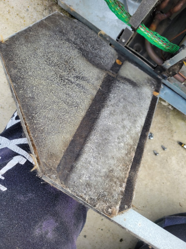 Here is a fun preview of what I uncovered when I took off the metal panel to access the ac coils. If I had a dollar for every time I started a project and uncovered mold… I would have at least 5 dollars.