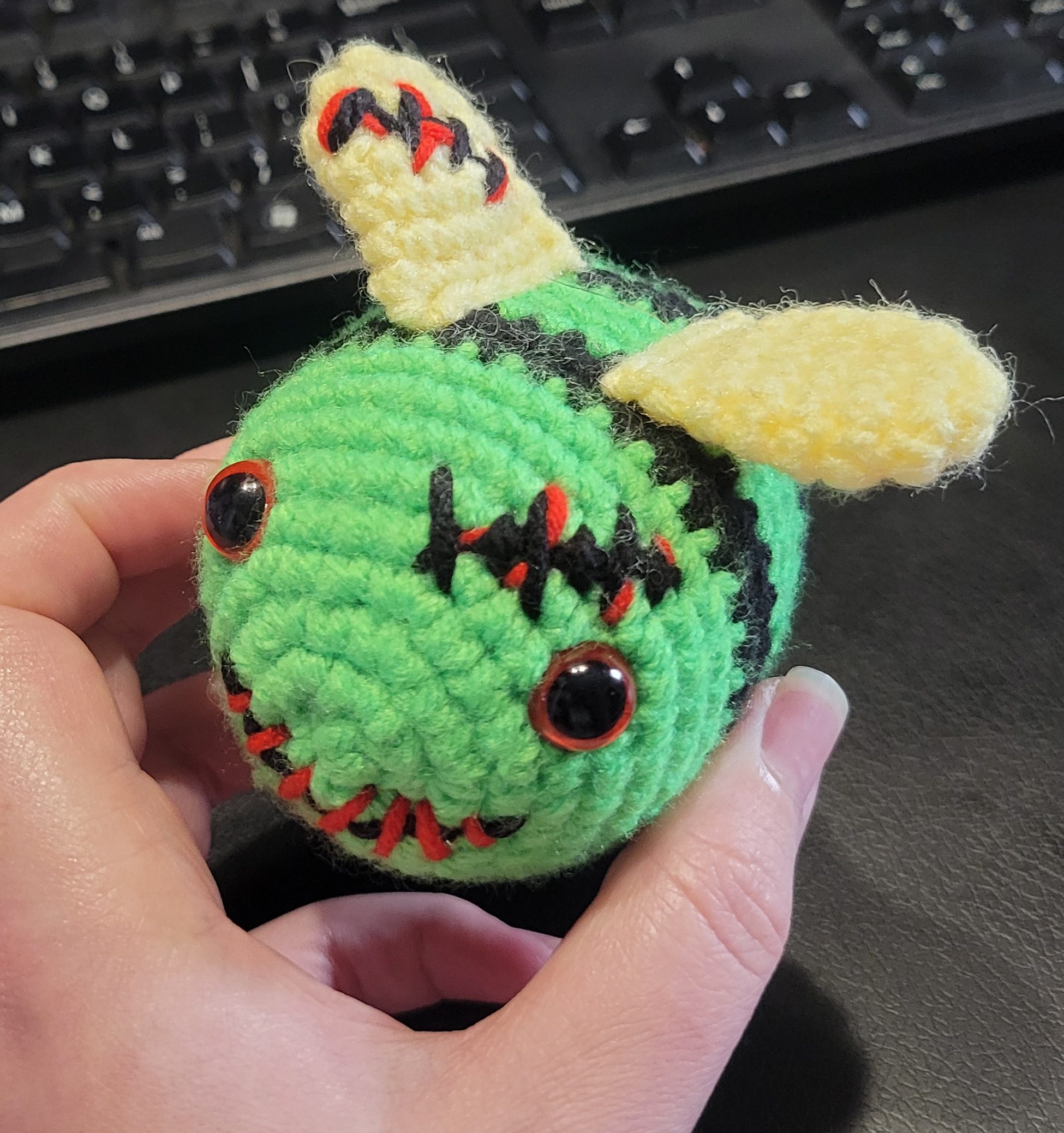 I also wanted to work on a few smaller things that I would be able to finish quickly. I made a little zom-bee to celebrate the start of October and spooky season.
