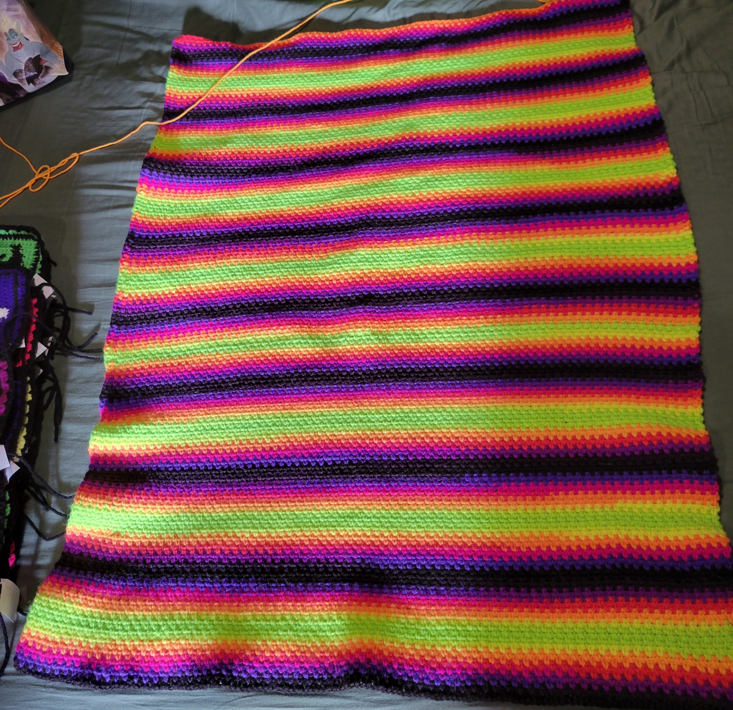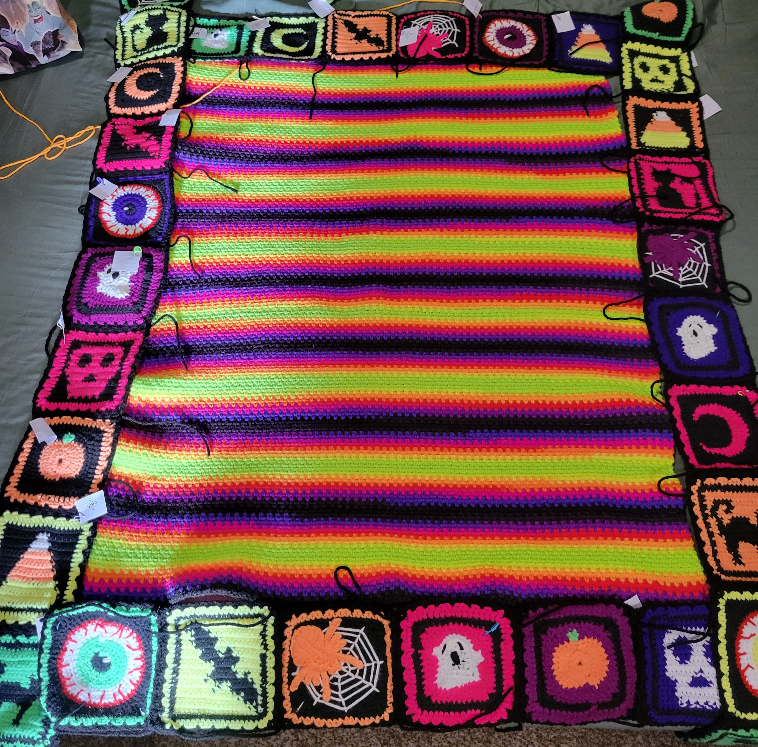 For the most part I kept working on the Halloween blanket. My goal is to have it finished by Halloween but I am not sure if I will make it. I was able to get all the granny squares for the border completed. I am still working on the center rectangle for the blanket and I am hoping that I will be able to finish that part during the trip to Florida. After that I will still need to connect everything and do the border.